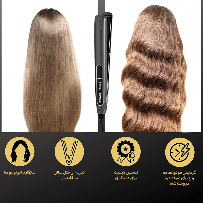 معرفی اتو مو لیز Lizze مدل اکستریم صفحه تیتانیوم اورجینال جعبه مخملی