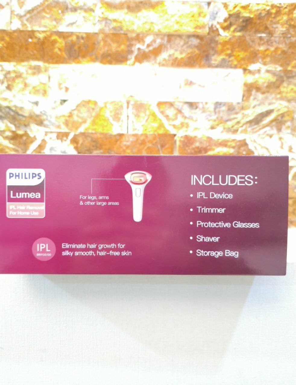 دستگاه حذف موهای زائد با تکنولوژی IPL از برند فیلیپس، مدل Lumea را نشان میدهد. این دستگاه برای استفاده خانگی طراحی شده و با پالسهای نوری، رشد مو را کاهش میدهد.